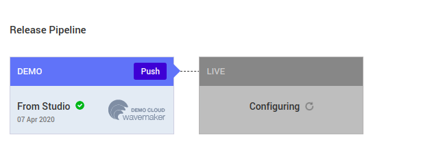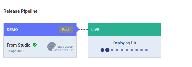 Once the live phase configuration is completed, you can trigger the deployment to DigitalOcean cluster by clicking Push option in the Demo phase.
