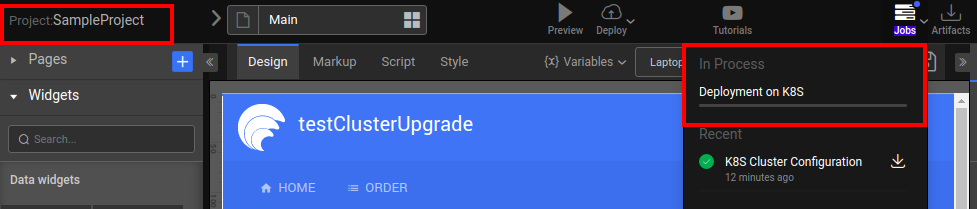 The deployment progress can be tracked in the Jobs section of the respective project as shown below.