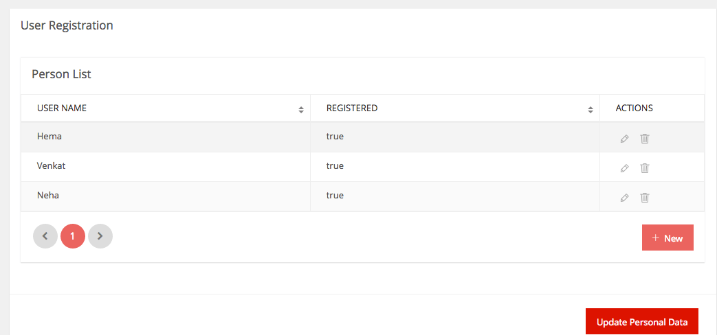 Run the app and click on Update Personal Data on User Registration page