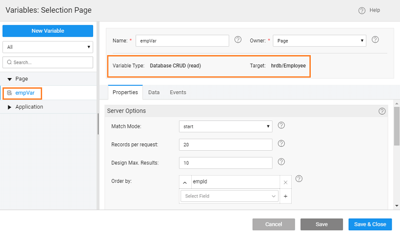 5. Create a Database Crud Variable for the Employee entity