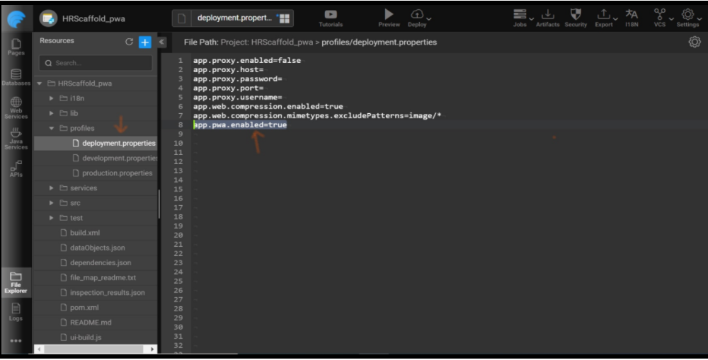 Create a project, add the PWA flag, and set the value as “true”. For example, app.pwa.enabled=true from the corresponding profile properties file.