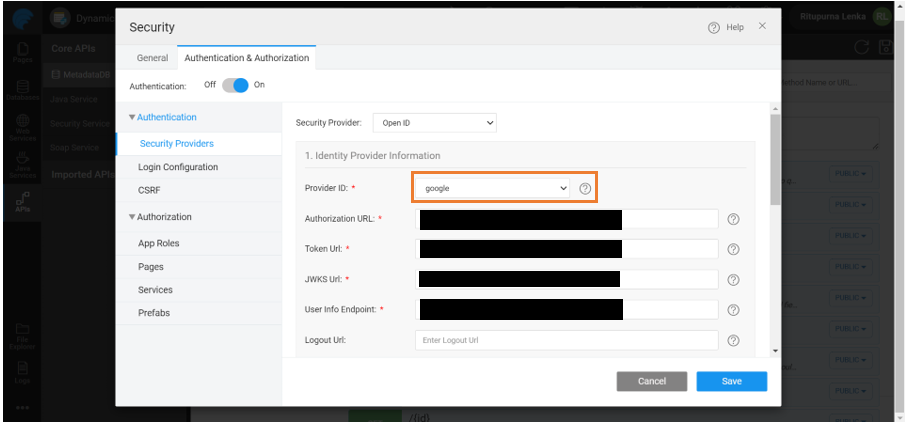Below are steps to choose Google as Open ID provider in WaveMaker.
