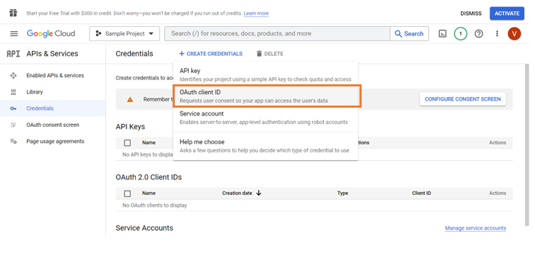 2. Select OAuth client ID from the drop-down menu.