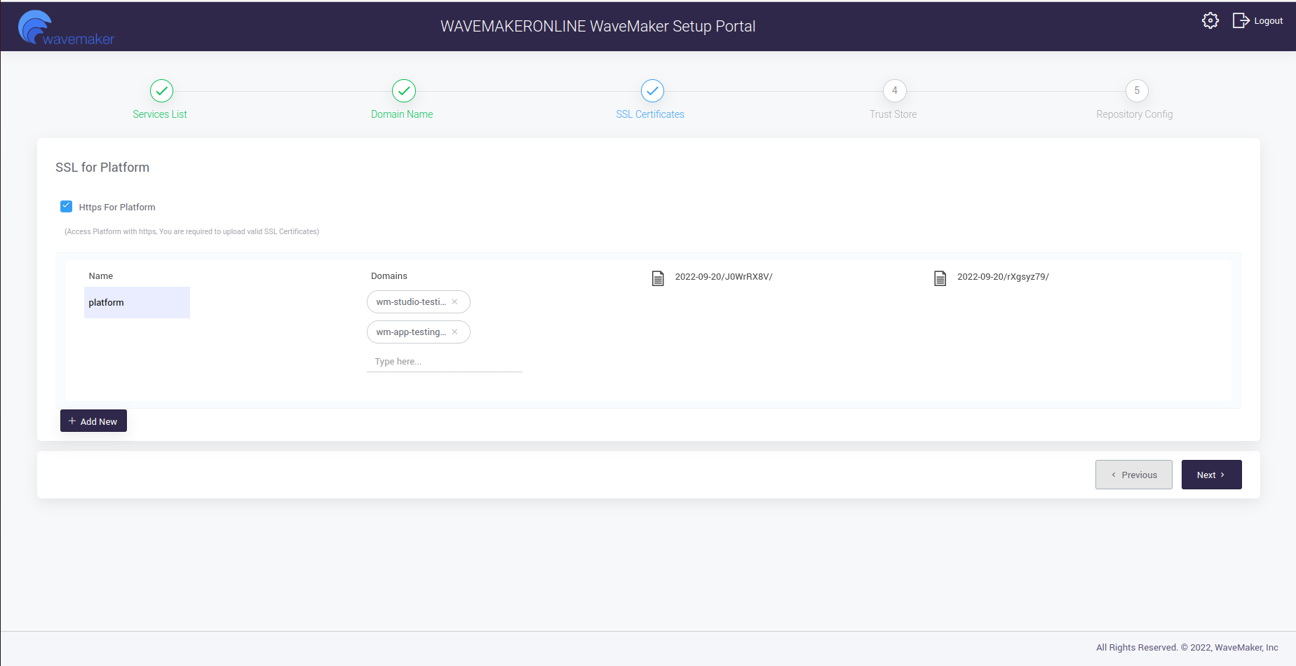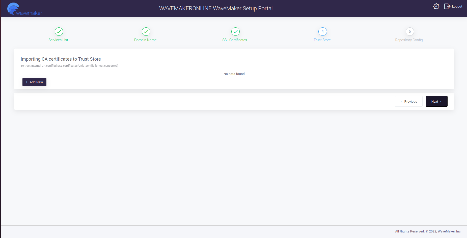 - Update the Trust Store by selecting on Add New.