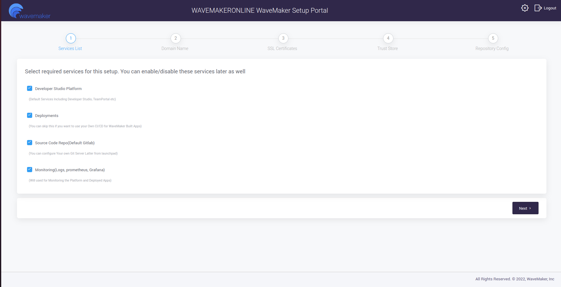 - You can customize the WaveMaker studio and App Domain URLs.