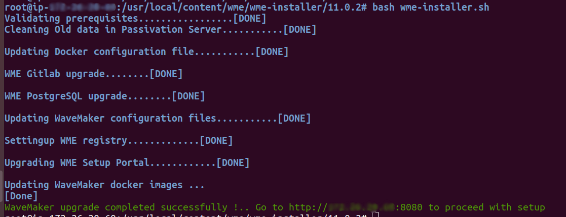 Go to http://Platform-Instance-IP:8080 as directed by the above command output to do the WME setup upgrade.