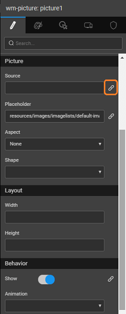 | Source | This property specifies the source for the picture. The source can be either a file or a URL - File: enter the directory and filename for the image to display (supported file types include .jpg, .gif and .png). By default, WaveMaker looks for images in the src/main/webapp directory of the project. Every WaveMaker project has a data directory under src/main/webapp, so this is a good place to put pictures. - URL: enter a URL to any internet-accessible image. To display the file, foo.jpg, in the project directory src/main/webapp/resources/images/imagelists/, enter the following into the source property:resources/images/imagelists/foo.jpg or simply foo.jpg |