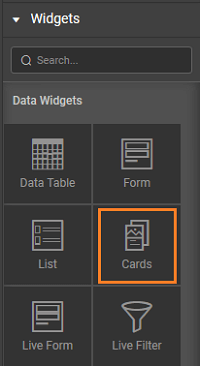 To bind the Cards to your back-end services data, drag and drop the Cards Widget onto the canvas.