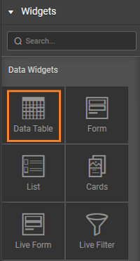 To bind the Data Table Widget to your back-end services data, drag and drop the Data Table Widget onto the canvas.