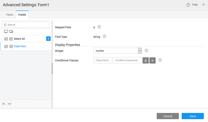 Form Field Configurations include Display Properties: