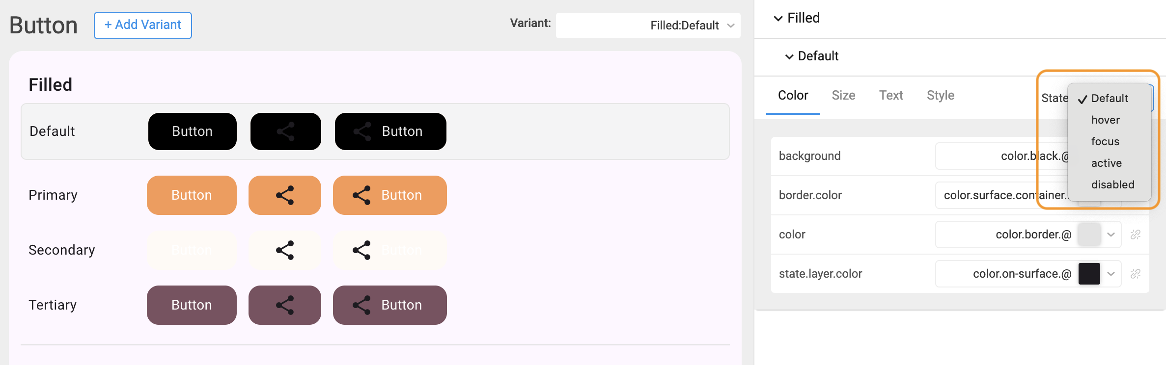 5. Preview the variant in Hover and Disabled states.